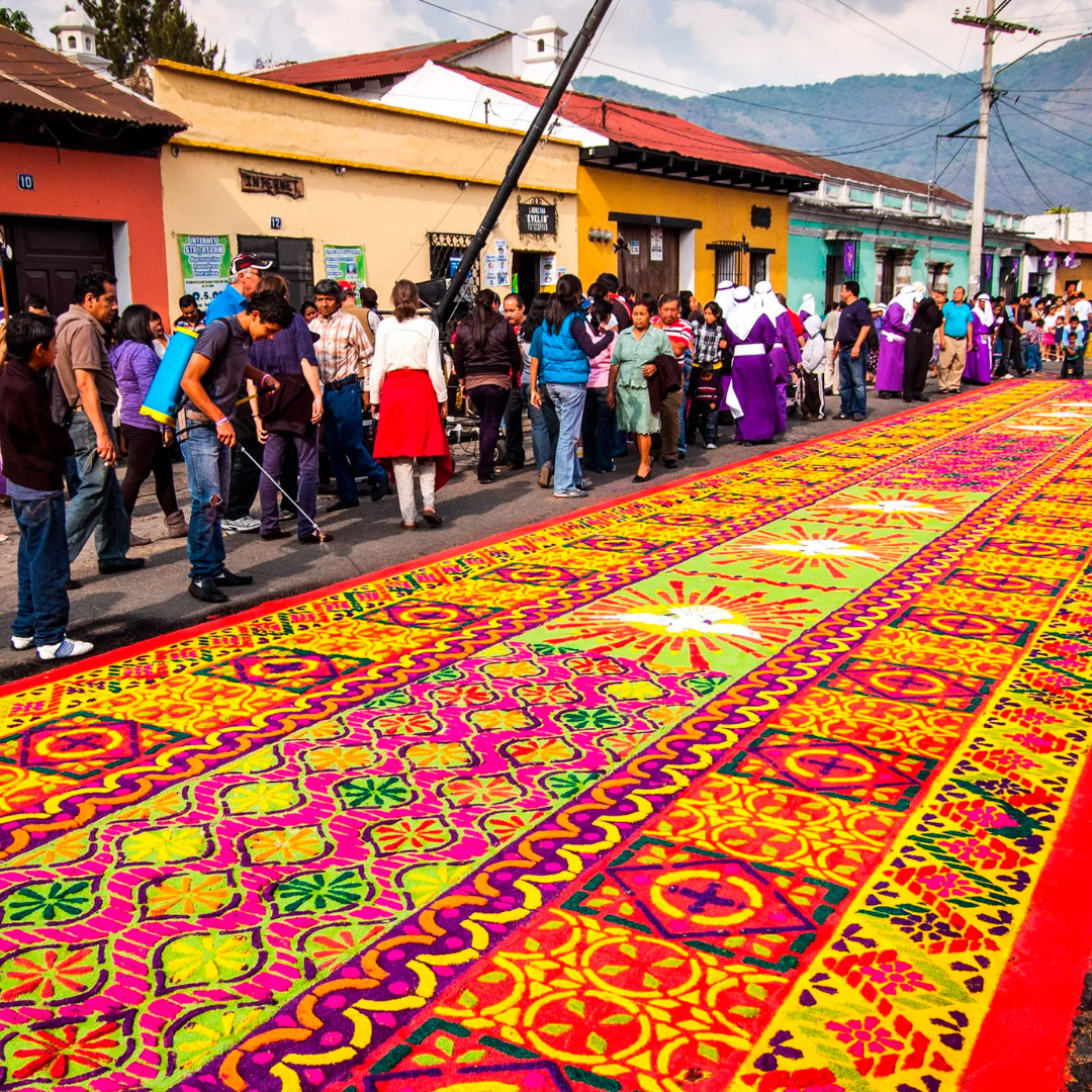 La Semana Santa en Guatemala es una manifestación cultural viva declarada Patrimonio Cultural Inmaterial por la UNESCO. Nosotros te contamos qué la hace tan especial: la elaboración de coloridas alfombras de aserrín y flores que decoran las ciudades, la intensidad y solemnidad de sus procesiones y la gastronomía de temporada, entre un sinfín de experiencias que te acercarán al corazón del país. La celebración combina fe, arte y comunidad en eventos que se viven de forma muy emotiva y detallada. En este itinerario, te llevamos a descubrir de una forma única a Guatemala; sus tradiciones poscoloniales y el legado del Imperio Maya.