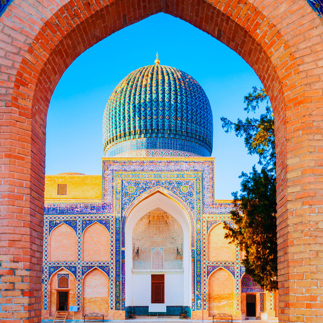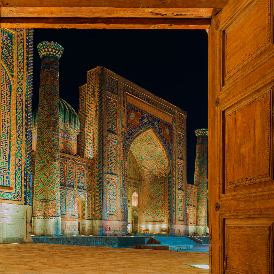 Uzbekistán, La Ruta de la Seda. Un viaje único que te llevará al corazón de la histórica ruta mercantil oriental. Un recorrido que conecta oasis y ciudades legendarias, famoso por la arquitectura islámica, sus mezquitas y bazares, sus madrasas y artesanías. Un punto que unía Asia con Europa y que fue testigo de grandes acontecimientos de la historia de la humanidad. Se dice que cuando Gengis Khan llegó a Samarcanda, con el objetivo de destruirla y someterla a su dominio, lloró al contemplar tanta belleza… y no derribó ni un solo ladrillo.